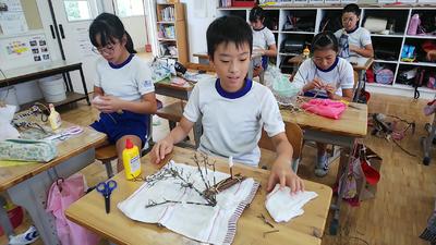 5年生の家庭科の授業では,ポケットティッシュ入れを作っていました。