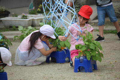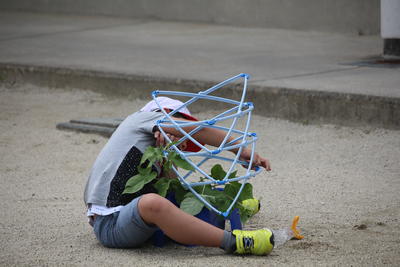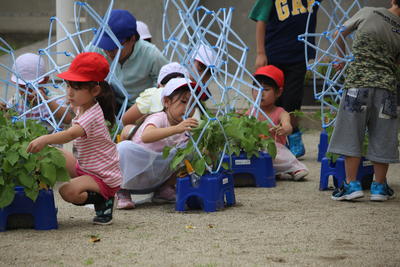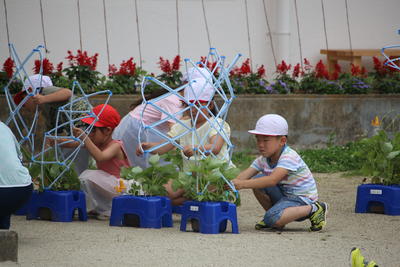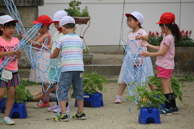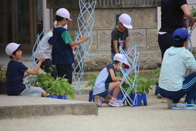 種から育てた1年生の朝顔もだいぶ成長してきました。ツルも伸びてきたので今日は植木鉢に支柱を取り付けました。