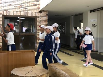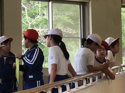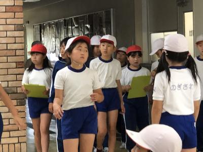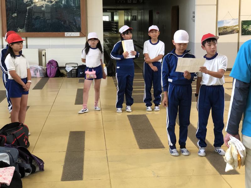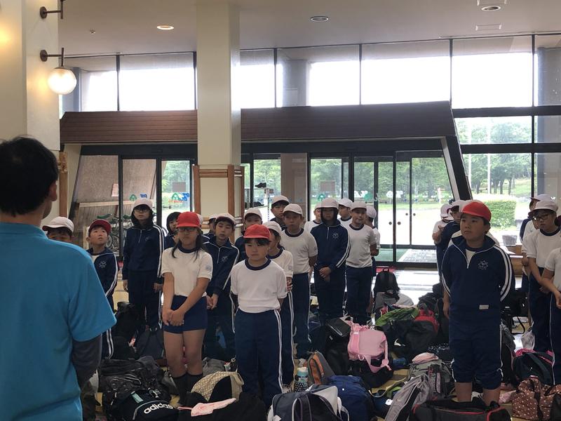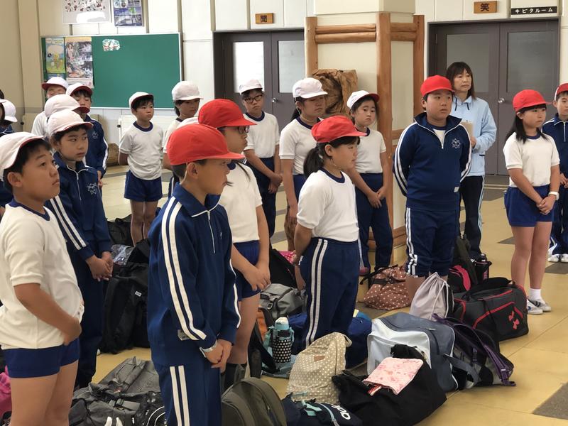 4,5年生の宿泊学習はあいにくの天気ですが、自然の家に到着し入所式を行いました。これからビジュアルオリエンテーションを始めます。