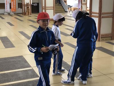 ビジュアルオリエンテーションが始まりました。館内をまわって与えられた目的物を探しています。