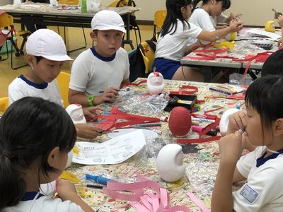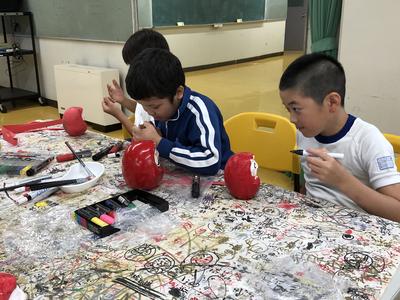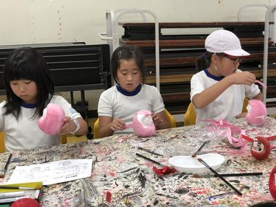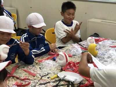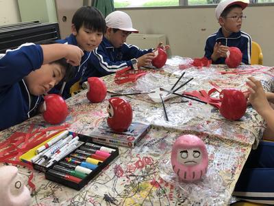 午前の活動も終了し班ごとの昼食です。午後はだるまの絵付けです。