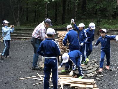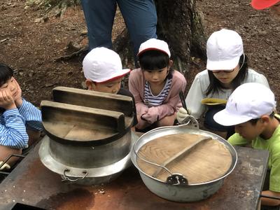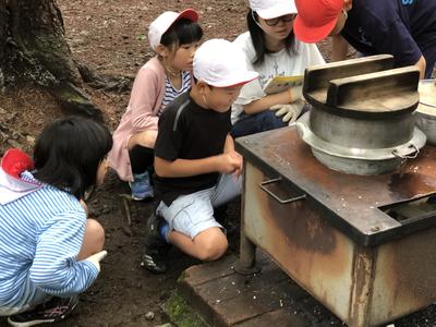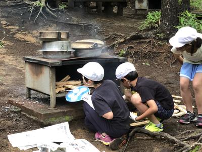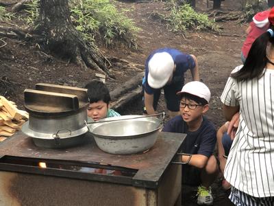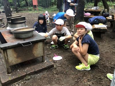 いよいよ最後の野外炊飯です。火起こしに悪戦苦闘している班もあるようです。ごはんのふたを開けてしまった班もあるようです。