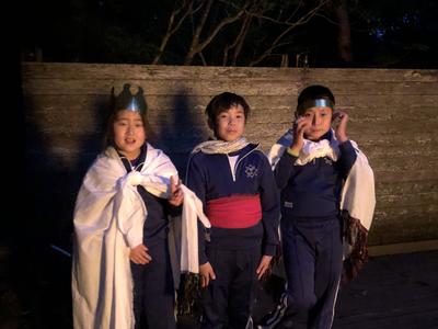 いよいよキャンプファイアーです。残念ながら準備と火の守の記念撮影のみです。