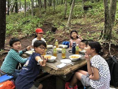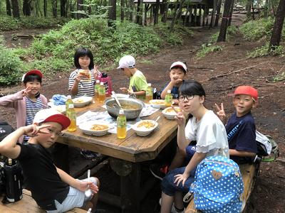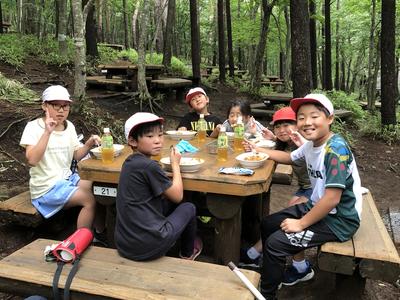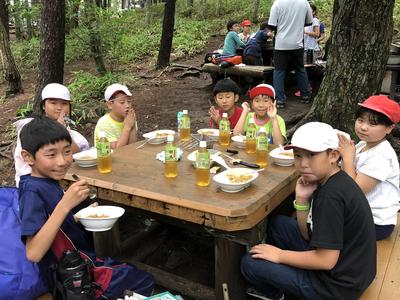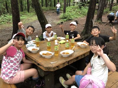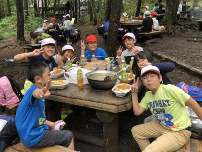 野外炊飯でのカレーライスも出来上がりました。どの班もとてもおいしいできあがりました。