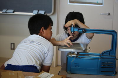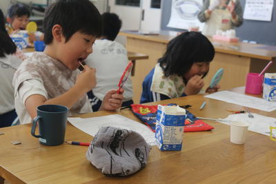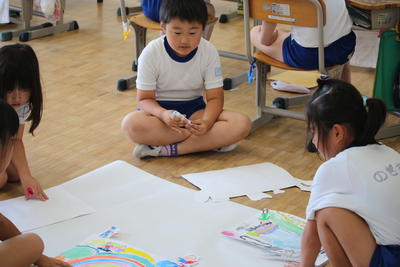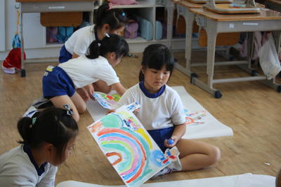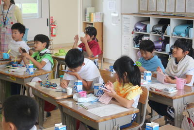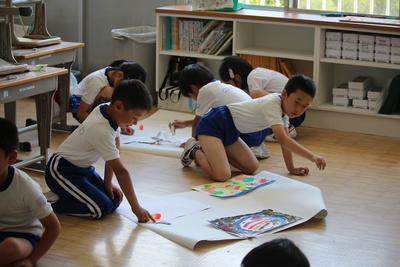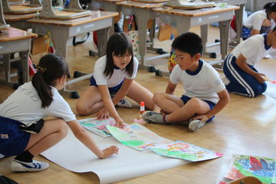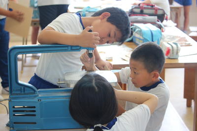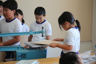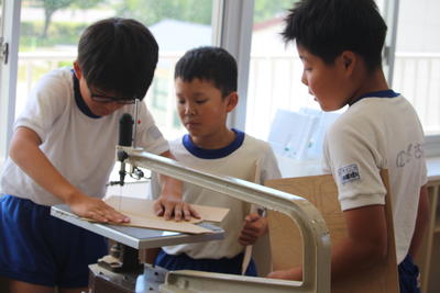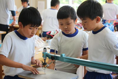 2年生と5年生の図工の授業の様子です。2年生は,絵を用いて何かしようとしています。5年生は,電動糸のこでの製作が始まりました。