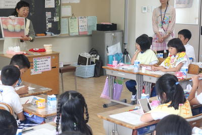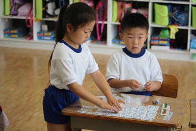 1年生の算数の授業では,足し算カードを使っての学習中でした。
