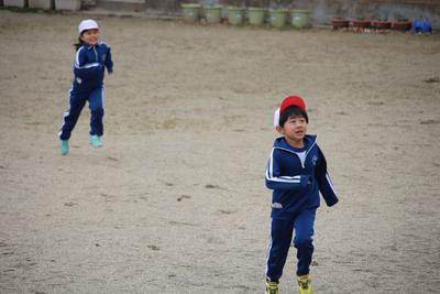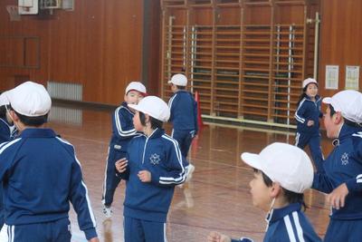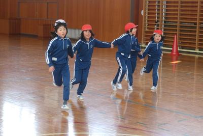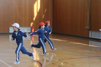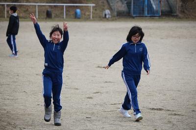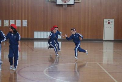 2年生の体育の授業の様子です。本気になって鬼ごっこで汗を流しています。