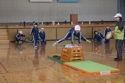 3年生の体育の授業です。跳び箱の練習の最中でした。全員跳べるように頑張れ!!!
