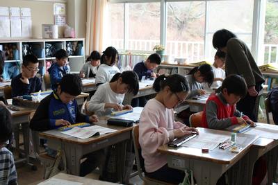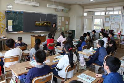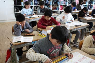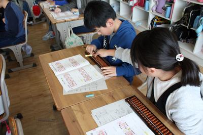 毎年行われているそろばん教室が,今年も3・4年生で行われました。なかなかそろばんに触れる機会がありませんが,算数科の学習内容にも含まれていることもあり,みんな一生懸命取り組んでいます。(写真は4年生のみとなってしまいました。)