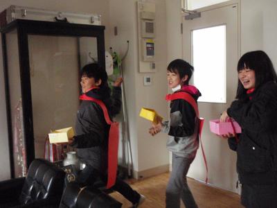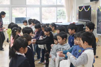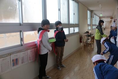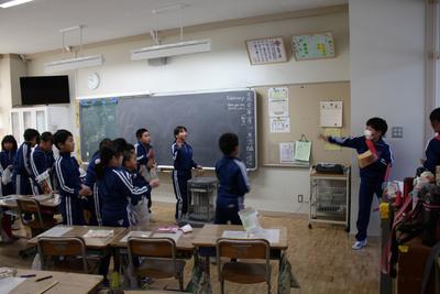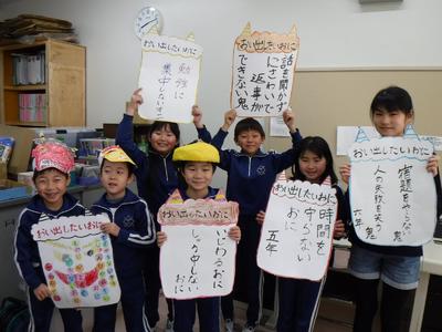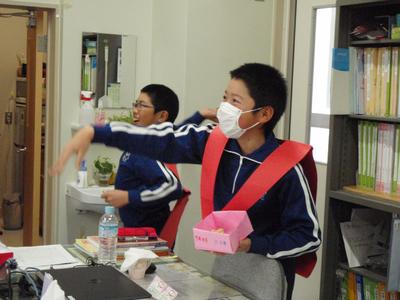 集会は体育館で行う予定でしたが、気温やインフルエンザへ配慮して放送で行いました。各学年で追い払いたい鬼を発表してもらい、業間に年男と年女が各学級などをも割って豆まき行いました。日本の伝統行事をみんな楽しんでいました。