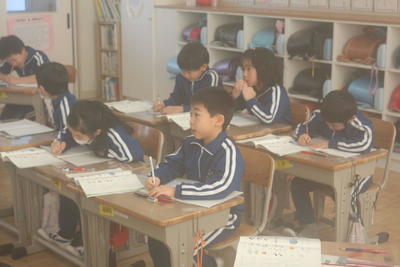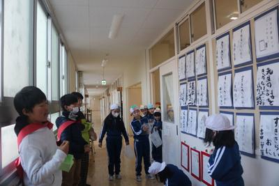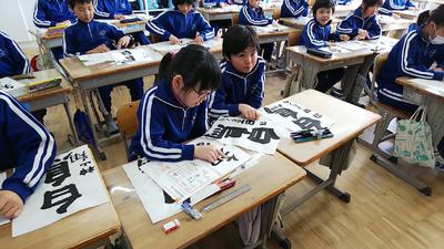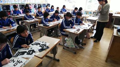4年生は書写で、書いた文字のチェックをしてから、小筆で手紙を書く学習へつなげる場面でした。