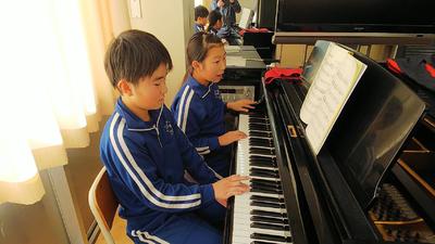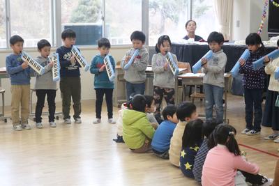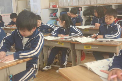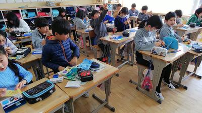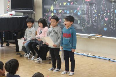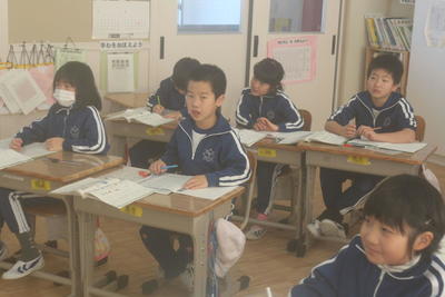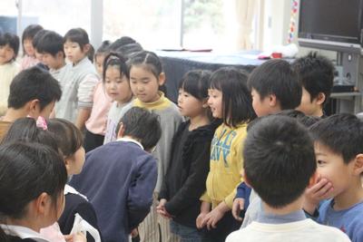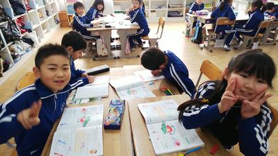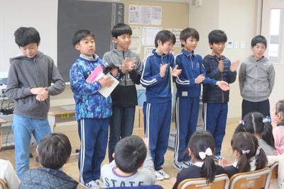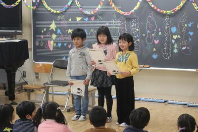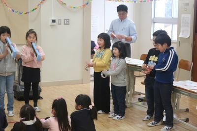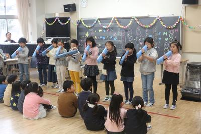 本日午後から新入生の保護者説明会と体験入学が行われました。体験入学では,はじめに6年生による読み聞かせがあり新入学予定時からみんなでお礼の言葉をいいました。次に場所を変えて音楽室で現1年生との交流が行われ,合奏演奏のの発表とプレゼント,おみせやさんごっこを通して交流をしました。新入生の皆さん4月の入学を待っています!