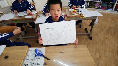 2年生の国語の授業です。今日は「なかまのことばとかん字」でめあては「ことばのなかまわけをしよう」です。はじめに家の人で「父」や「母」などの漢字から「親」などの漢字へとつながげていました。父のことを「父上」と呼んでいる発言もありましたが、すらしい!!!