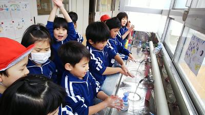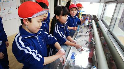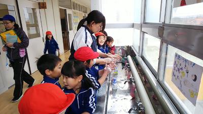 1年生は、手洗い歌に合わせてしっかり手を洗いました。かぜ予防頑張っています。