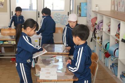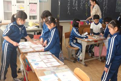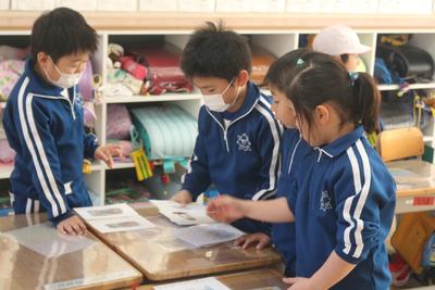 1年生は,おみせやさんごっこの練習をしていました。新入生の体験入学へ向けての練習でしょうか。