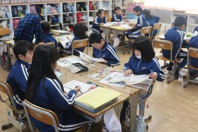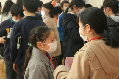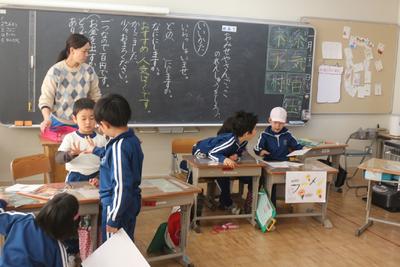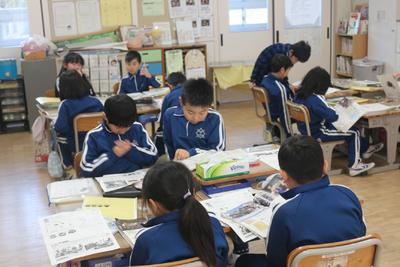 清掃も終わり、現在午後2時過ぎです。1年生は,帰りの会を終えて下校です。3年生と6年生は5校時の授業中でした。3年生は,先日社会科の見学学習をした昔の道具について確認の学習でした。6年生はなわとび大会に向けて個人種目の練習の真っ最中でした。
