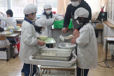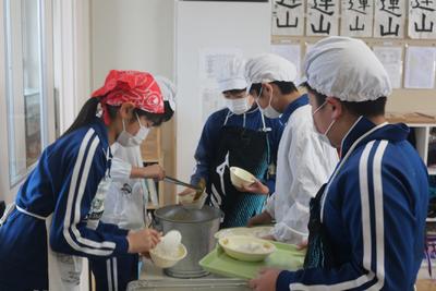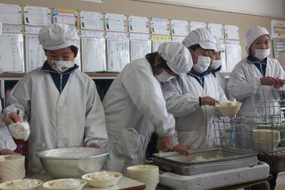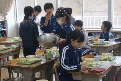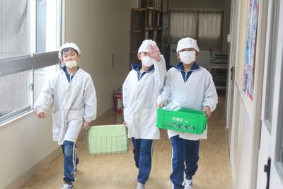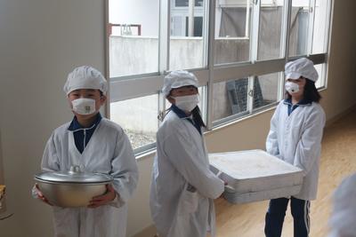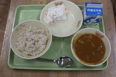 今日の給食は,みんなだ好きなカレーです。みんなで準備をしてこれからいただきます。