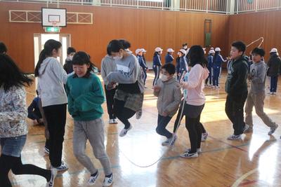 業間の体育館が長なわとびの練習で賑わっています。なわとび記録会へ向けての練習です。それそれ昨年の記録を更新して各学年の新記録目指して頑張っています。