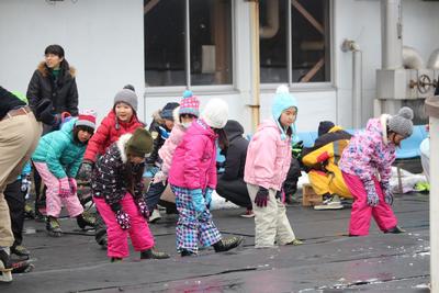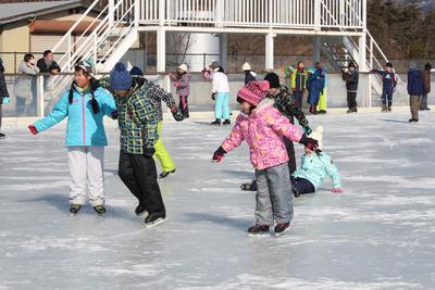 2019年1月30日 14時39分スケート教室2日目は,3・4年生です。昨日とは打って変わって風も穏やかで暖かい陽気でのスケート教室となりました。昨年の経験をもとに準備運動,基本の歩き方などを確認すると,時々転んでしまう児童もいましたが,すぐにスケート場を同じ方向に滑り始めました。さすが3・4年生!