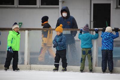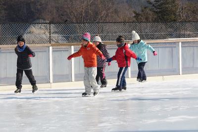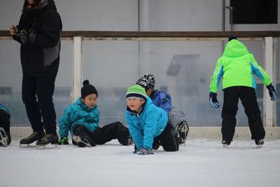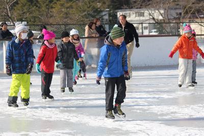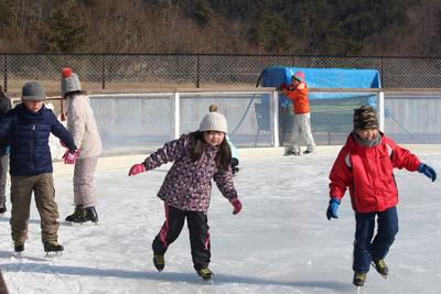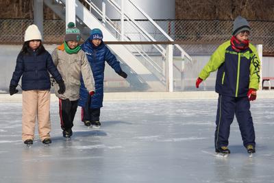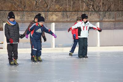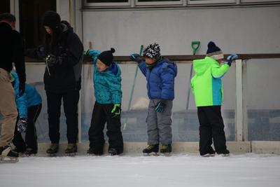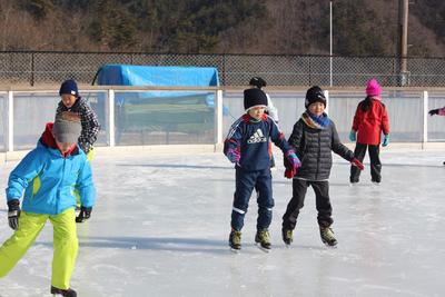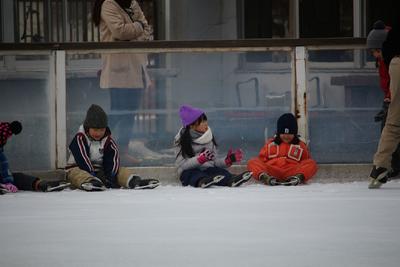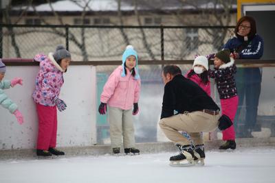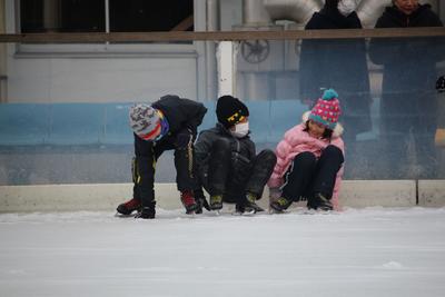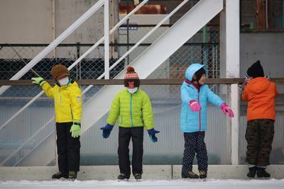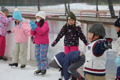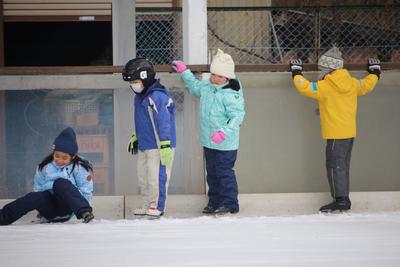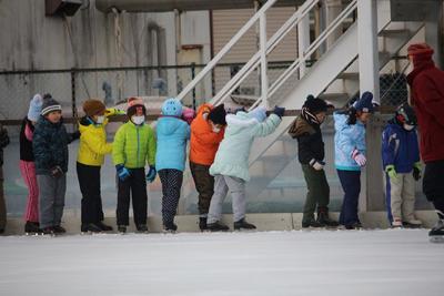 今日から3日間のスケート教室が始まりました。今日初日は,1・2年生です。母畑のスケート場は冷たい風が吹き体感温度もかなり低いですが,準備運動をして転び方,このあと少しずつ歩き方、滑り方の練習に入っていきます。