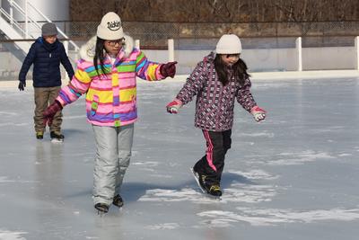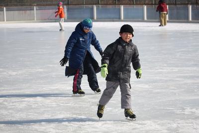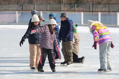 スケート教室2日目は,3・4年生です。昨日とは打って変わって風も穏やかで暖かい陽気でのスケート教室となりました。昨年の経験をもとに準備運動,基本の歩き方などを確認すると,時々転んでしまう児童もいましたが,すぐにスケート場を同じ方向に滑り始めました。さすが3・4年生!