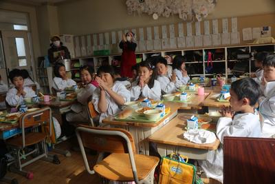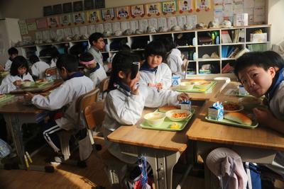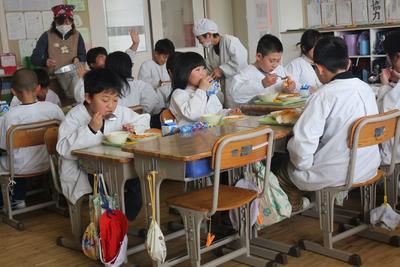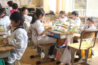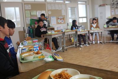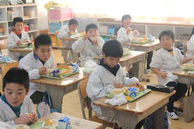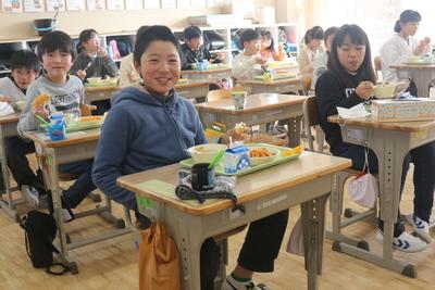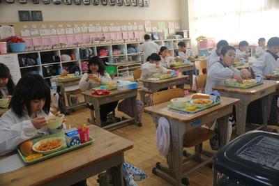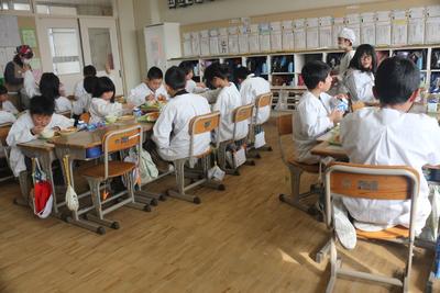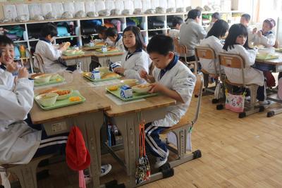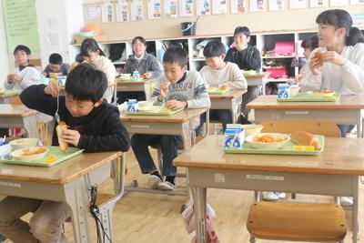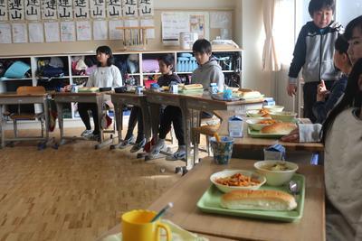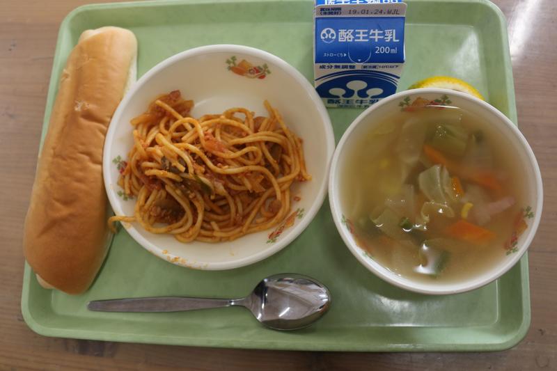 今日の給食の献立は「減量コッペパン」「スパゲティナポリタン」「野菜スープ」「オレンジ」「牛乳」でした。各学年ともに楽しく、そしておいしくいただきました。