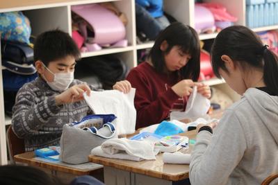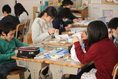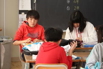 今日の6年生の家庭科の授業は、ぞうきん作りです。針と糸と格闘しながら縫っています。出来上がり具合は子どもたちに聞いてください。