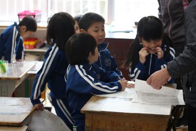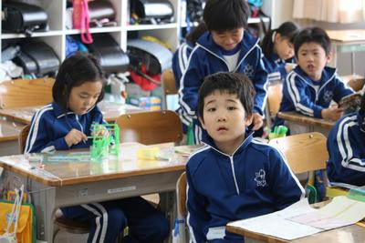 1年生の算数の授業の様子です。都合により今日は教頭先生が授業を進めています。