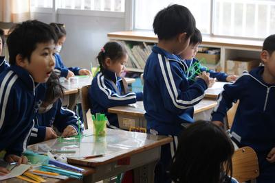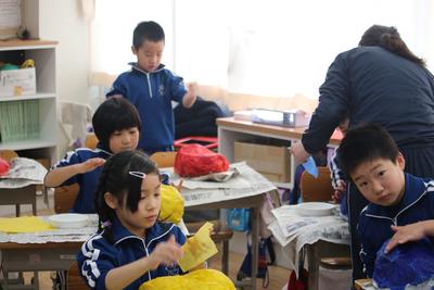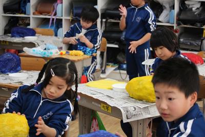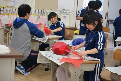 2年生の図工の授業は、張り子でお面作りです。どんなお面ができるか、お楽しみに!
