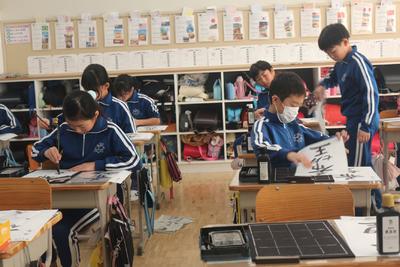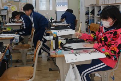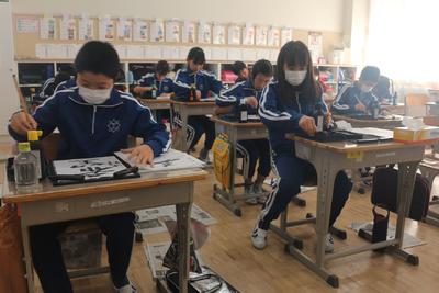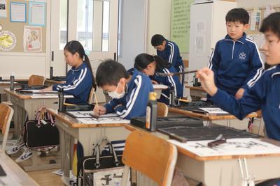 5年生の書写の授業の様子です。今日の課題は「希望」です。この時期らしい文字ですね。