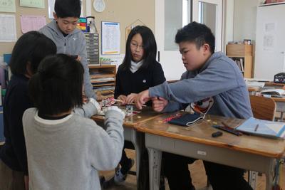 6年生の理科の授業の様子です。電池を使っての実験を通して電気の学習をしています。