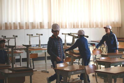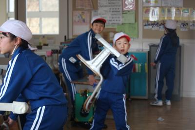 2019年1月21日 13時49分給食(今日は和風タンメンでした。)を食べて、昼休みはみんなと遊んだり鼓笛の練習で過ごし、いよいよ掃除の時間です。縦割り班で、自分の役割をしっかりやろうとがんばって清掃しています。