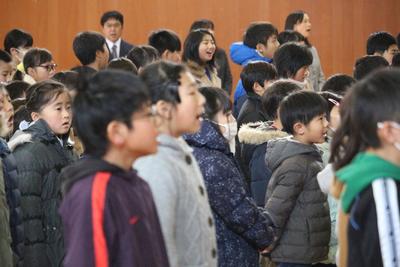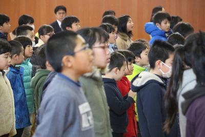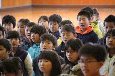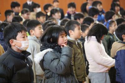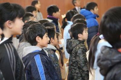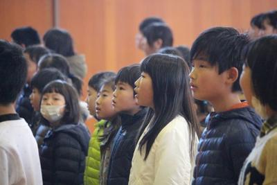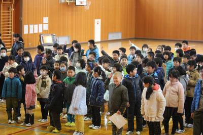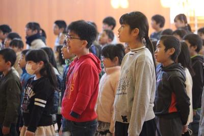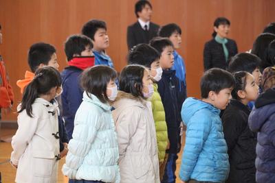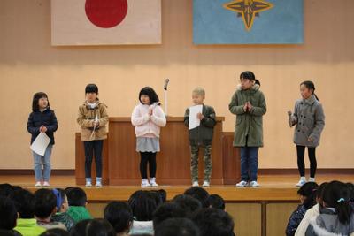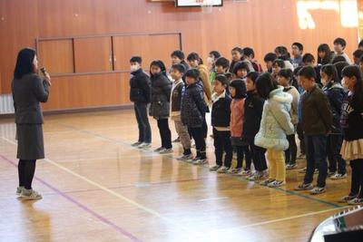 いよいよ今日で2学期も終わりです。体育館で2学期終業式を行いました。校長式辞の後、1・3・5年生の児童から「2学期を振り返って」の発表があり,生徒指導担当より冬休み中の生活について,そして全員で効果を歌って式を終えました。この後,学級ごとの活動,弁当,清掃,なかよし班下校となります。