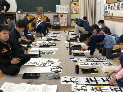 今年も野木沢地区書き初め大会が自治センターで行われています。みんな丁寧に仕上げようと頑張っています。