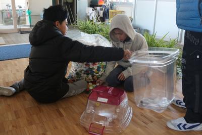 今日は3学期最初の委員会活動でした。集めた空き缶や水槽の掃除,体育館のモップがけ,朝顔の種の整理など各委員会で活動していました。