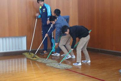 2学期、そして2018年ももうすぐ終わりです。お世話になった校舎をきれいにしています。暖冬とはいえ冬の水は冷たいですが、一生懸命ぞうきんを絞って階段や教室などの床のよごれをきれいにしています。