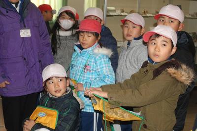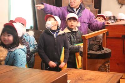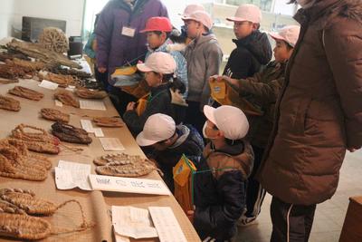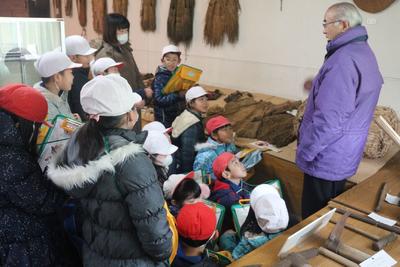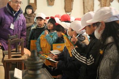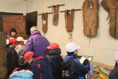 見学学習で3年生が石川町の歴史民俗資料館に行っていました。資料館ではわらじや機織り機、長持など今ではあまり見られなくなった昔の道具について説明していただきました。