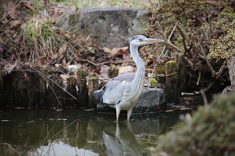 お昼前、職員室から外に目をやると鷺がやってきて池の魚をねらっていました。食べられないように追いはらいましたが,しつこくねらっているようです。注意して見てます