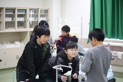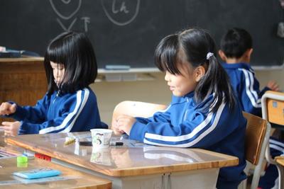 5年生の理科の授業の様子です。今日の授業は,砂糖を使ってものが溶けるときその限界はあるのか,実際に実験を通して確認しています。