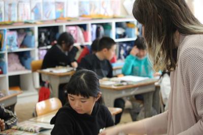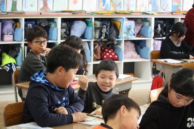 今日の4年生の外国語活動のねらいは,「やさいとくだものの名前を英語でいえる」です。ALTの先生と活発に楽しく授業に取り組んでいます。