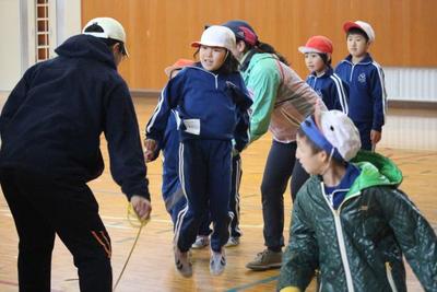 2年生の体育の授業では,なわとび大会に向けて,長なわとびの練習をしていました。記念の記録を更新すべくみんな一生懸命でした。