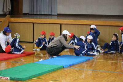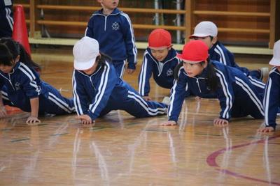 2018年12月13日 12時02分1年生の体育の授業は,マット運動(後転)です。はじめに準備運動も含めて運動身体作りプログラムを行ったあといよいよマット運動で後転の練習でしたが、まだまだ練習が必要なようです。