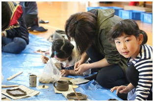 PTA主催の親子陶芸教室が行われました。最初に講師の先生に説明を受けて親子で一緒に,または親子でそれぞれにカップなどを作りました。制作が始まると親子ともに次第に真剣になり,よい雰囲気の中での時間を共有できました。この後,窯で焼いていただき1か月ほどで手元に届けていただけるとのことでした。