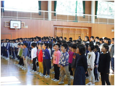 野小フェスティバルまであと5日となりました。今日の音楽集会は,その時の全校合唱の練習です。入退場から全体での合唱と本番にあわせての練習でした。当日の全校合唱をお楽しみにしていてください。