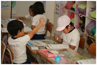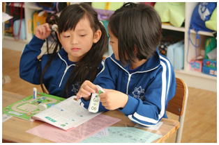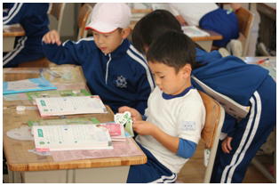 1年生の算数の授業で,となりどうしでたし算カードに取り組んでいました。