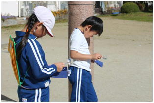 3年生の理科の授業の様子です。今日は,太陽の光がどれほどすごいか,レンズで太陽光を集めて色紙を焦がそうとしていますが,なかなか焦げずに四苦八苦している児童もいました。