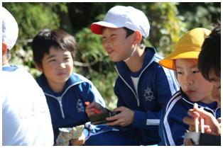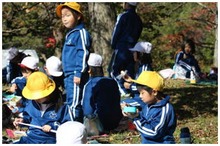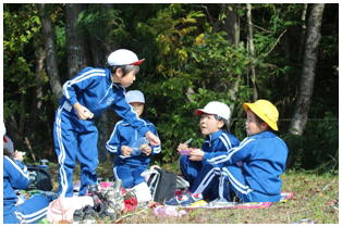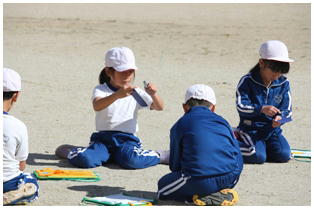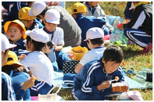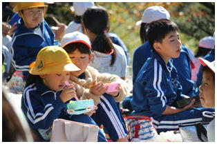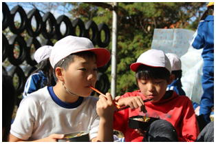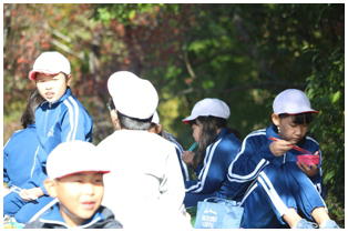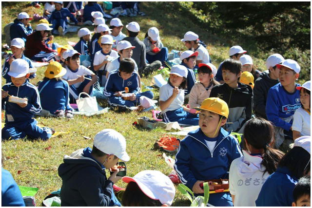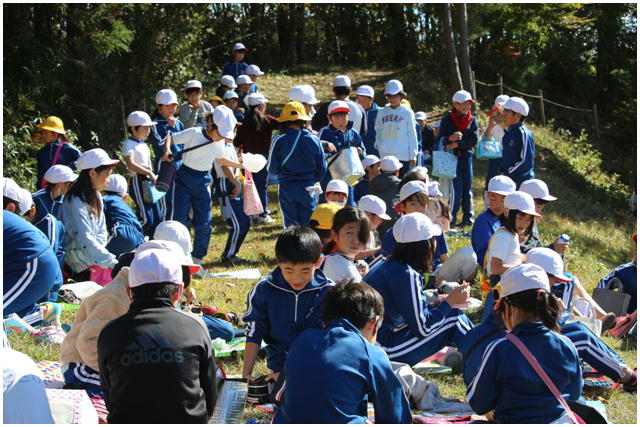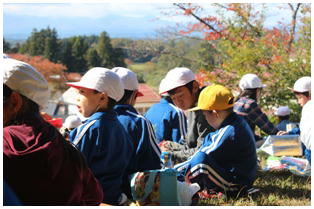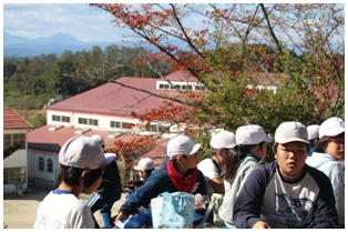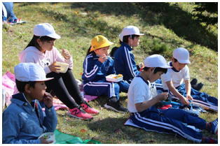 今朝はとても冷え込んだものの,天気は最高の青空の下,今年度2回目の希望ヶ丘での昼食会が行われました。縦割りのなかよし班での希望ヶ丘頂上での食事はとても楽しそうでした。食事後は,6年生がリーダーとなって楽しく遊びました。