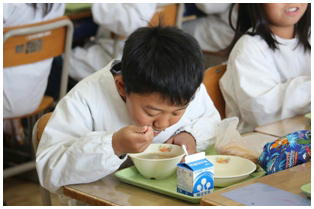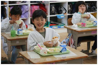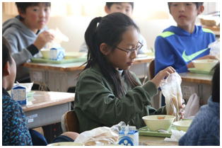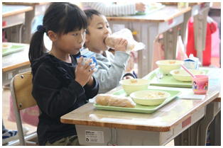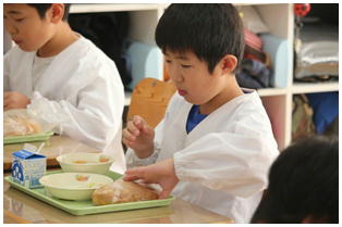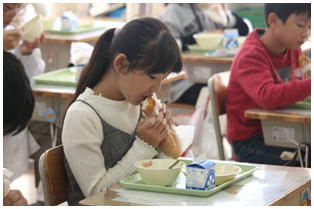 毎日楽しくて美味しく給食をいただいていますが,今日の献立はみんな大好きな「揚げパン」でした。みんな味わって食べています。
