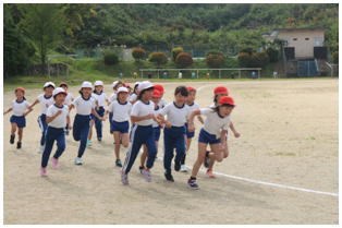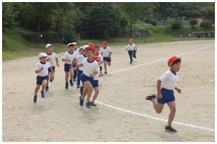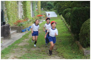 マラソン大会へ向けて,低学年の試走が行われました。途中,歩いてしまう子もほとんど無く最後まで大会当日の実際のコースを最後まで走りました。