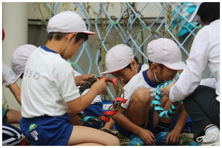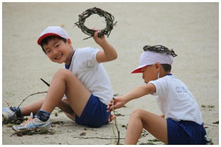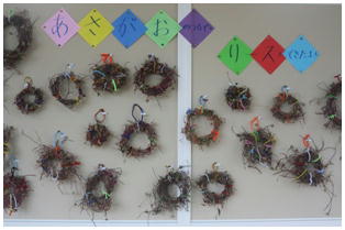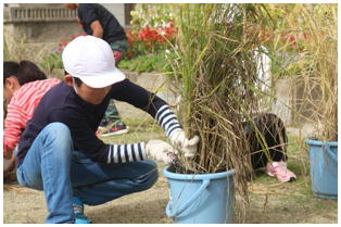 先日収穫したサツマイモの茎を使って,リース作りに取り組んでいます。これからドングリや松ぼっくりで装飾するそうです。
